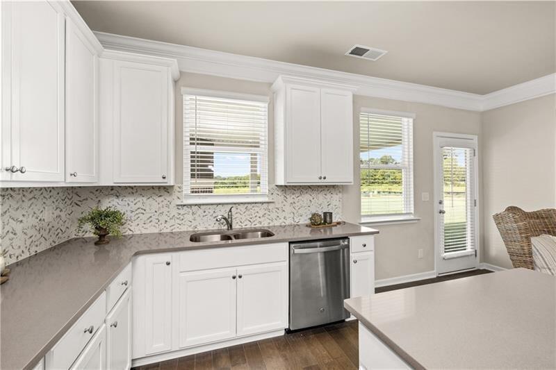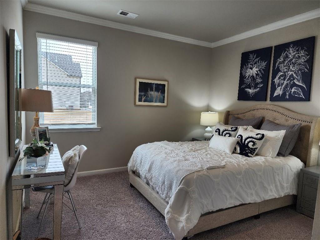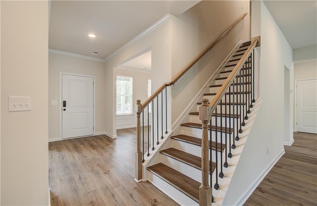 Rockhaven Homes presents: THE LEIGHTON on Homesite 84! This stunning home features 5 Bedroom, 4 Full Bathrooms, 3 Sides brick, with covered rear Patio, Media Room, Gourmet Kitchen with Double Wall Mount Ovens, Huge Master Closet with dual windows. FULL UNFINISHED DAYLIGHT BASEMENT. This magnificent brick home offers luxurious features and thoughtful design elements, perfect for comfortable and stylish living. Upon entry, you are greeted by a guest bedroom and a full bathroom on the main level, providing convenience and privacy for multigenerational living arrangements. The layout includes formal separate living and dining rooms, ideal for hosting gatherings or enjoying intimate dinners. At the heart of the home is a spacious family room featuring a sleek floating fireplace that adds warmth and ambiance to the space. The beautiful gourmet kitchen is equipped with 42" cabinets with crown moldings, granite countertops, and a large kitchen island, offering ample workspace for meal preparation and entertaining. On the upper level, you'll discover a haven of relaxation and entertainment in the media room, a cozy retreat perfect for movie nights. The highlight of the upper level is the expansive owner’s suite with 9-foot vaulted ceilings and huge walk-in closets with dual windows, providing abundant storage space for your wardrobe essentials. The master bathroom features a tiled spa shower and a separate tub for ultimate relaxation. 3 SIDED BRICK HOMES. Quick Move-In. Stock Photos Used. Actual Home May Vary.