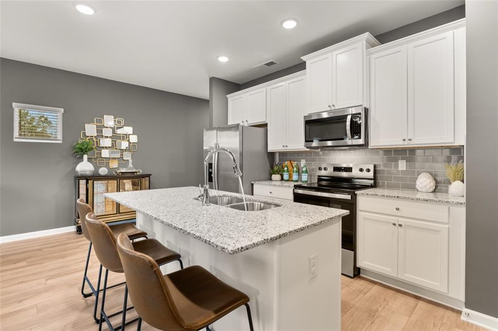 Quick Move-In Welcome to our brand-new construction townhomes, where modern elegance meets stylish functionality. These exquisite townhomes offer a perfect blend of comfort and sophistication, featuring: - **3 Spacious Bedrooms** - **2.5 Baths** - **Convenient 2-Car Garages** - **Full Brick Exteriors** Explore the Edmund plan, designed with an open kitchen concept that boasts: - 42-inch cabinets - Gleaming granite countertops - Chic modern finishes The kitchen seamlessly flows into the family room, creating an inviting space for gatherings and daily living. The owner's suite is a serene retreat with a double vanity and a spacious shower. Our community is designed for an active lifestyle with amenities such as: - A walking trail - A sparkling pool - A relaxing cabana Enjoy the best of both worlds with a tranquil home environment and proximity to vibrant attractions. Located just minutes from I-75 and I-675, our community offers easy access to the Stockbridge Amphitheater and local shopping, dining, and entertainment options. An effortless 14–16-minute commute takes you to Atlanta International Airport, making travel a breeze. Nearby attractions include the exciting Spivey Splash Water Park, perfect for family fun. Come and tour our beautiful new community and experience the exceptional lifestyle that awaits you at Reeves Park. *** Please note that photos are for illustrative purposes and may not represent the actual home.***