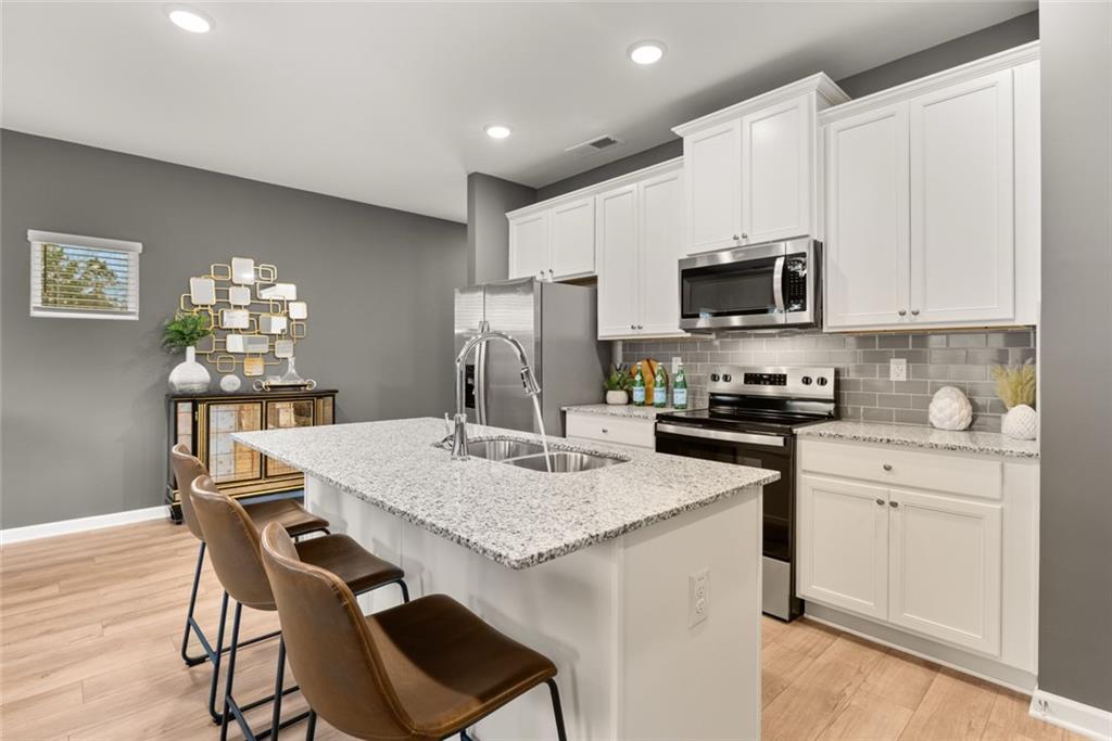 Quick Move-In Welcome to our brand-new construction townhomes, where modern elegance meets stylish functionality. These exquisite townhomes offer a perfect blend of comfort and sophistication, featuring: - **3 Spacious Bedrooms** - **2.5 Baths** - **Convenient 2-Car Garages** - **Full Brick Exteriors** Explore the Edmund plan, designed with an open kitchen concept that boasts: - 42-inch cabinets - Gleaming granite countertops - Chic modern finishes The kitchen seamlessly flows into the family room, creating an inviting space for gatherings and daily living. The owner's suite is a serene retreat with a double vanity and a spacious shower. Our community is designed for an active lifestyle with amenities such as: - A walking trail - A sparkling pool - A relaxing cabana Enjoy the best of both worlds with a tranquil home environment and proximity to vibrant attractions. Located just minutes from I-75 and I-675, our community offers easy access to the Stockbridge Amphitheater and local shopping, dining, and entertainment options. An effortless 14–16-minute commute takes you to Atlanta International Airport, making travel a breeze. Nearby attractions include the exciting Spivey Splash Water Park, perfect for family fun. Come and tour our beautiful new community and experience the exceptional lifestyle that awaits you at Reeves Park. *** Please note that photos are for illustrative purposes and may not represent the actual home.***