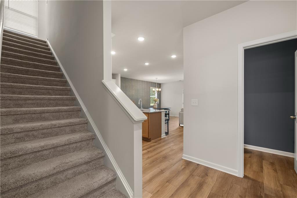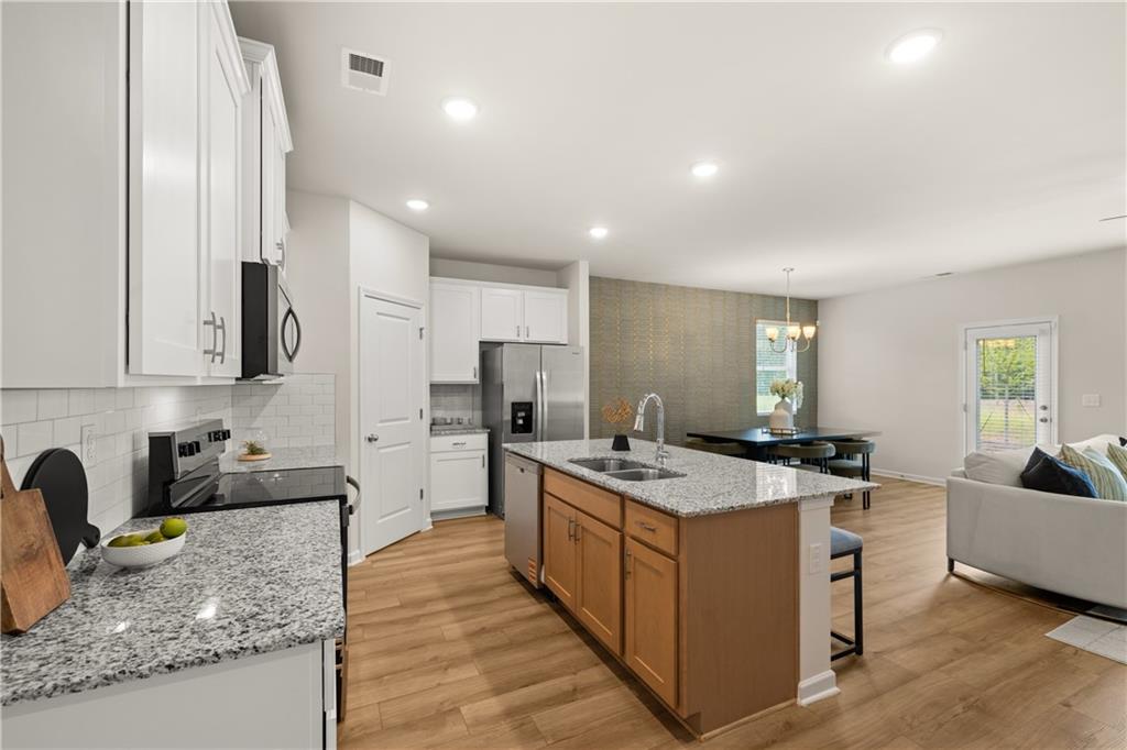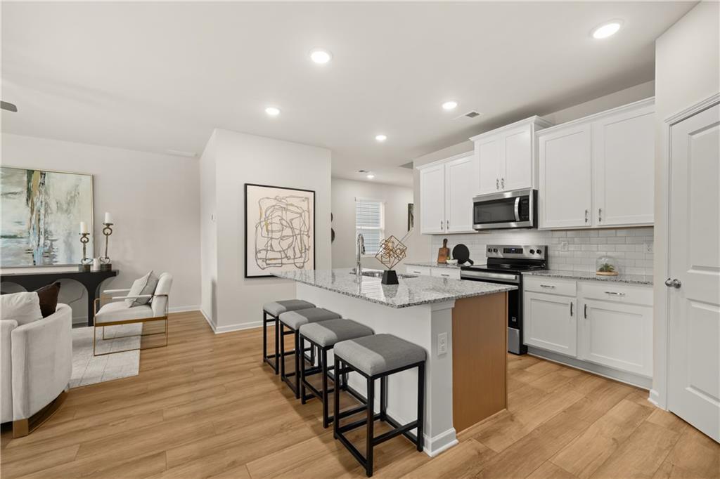 3-STORY HOMESITE: ENJOY 3-FINISHED LEVELS OF LIVING - Come visit the beautiful Walden Park - The Retreat and explore our Rosedale Model—a stunning 4-Bedroom, 3.5 Baths Single-family Home with a spacious two-car garage and cutting-edge smart home features. You'll be delighted by its upscale finishes, including 42-inch kitchen cabinets with crown molding and pulls, a stylish tiled backsplash, and elegant granite countertops. The owner's suite offers a private retreat, featuring a spacious walk-in closet and a spa-like bathroom with a separate shower and soaking tub, providing the ultimate in relaxation. Two additional generously sized bedrooms provide comfort and versatility, perfect for family, guests, or a home office. The third level features the fourth bedroom and a fully finished bathroom, adding even more space and functionality to this exquisite home. Claim the keys to this lovely home and embark on a journey filled with modern indulgence, including state-of-the-art smart home technology. At this price, it won't last long! At The Retreat at Walden Park, residents enjoy resort-style amenities, including a swimming pool, cabana, playground, and dog park. The community is conveniently located near shopping, dining, and major highways (I-75 & I-285), making commuting a breeze. Refined renderings do not fully reflect the final product. MOVE IN DEC-2025