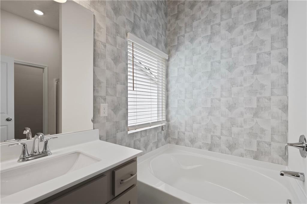 Welcome to the stunning Charleston "D" floorplan-this beautifully designed home offers a modern, open-concept layout with high-end finishes and thoughtful upgrades throughout. Featuring 3 bedrooms and 2.5 bathrooms, this spacious layout provides both comfort and functionality. The gourmet kitchen is a chef's dream, equipped with 42" cabinets with crown molding, granite countertops, and stainless steel appliances including a range, microwave, and dishwasher. Large windows throughout the home fill the space with natural light, creating a warm and inviting atmosphere. A unique lookout window on the front door adds charm and extra functionality. Upstairs, the Owner's Suite boasts tray ceilings, a private bath with a separate shower and soaking tub, and a walk-in closet. It is accompanied by two generously sized secondary bedrooms and a full bathroom. Located in The Retreat at Walden Park, residents enjoy resort-style amenities including a swimming pool, cabana, playground, and dog park. The community is conveniently located near shopping, dining, and major highways (I-75 & I-285), making commuting easy. Renderings may differ from the actual finished product.