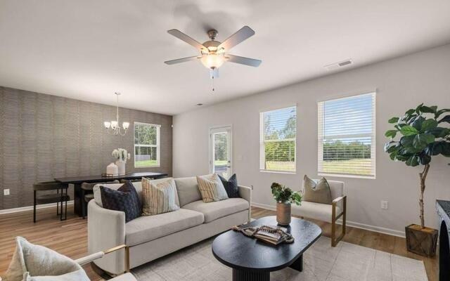 Welcome to the stunning Brixton floorplan: Owner's Suite on the Main with Walk Out to Patio! Don't Miss this incredible Opportunity, with Loft & 2- Bedrooms Up. This beautifully designed home boasts a modern, open-concept layout featuring high-end finishes and thoughtful upgrades throughout. The owner's suite is conveniently located on the main level, offering easy access and complete first floor living. This private retreat includes a walk-in closet and a spa-like bathroom with a luxurious shower. From the owner's suite, enjoy seamless indoor-outdoor living with direct access to a patio, perfect for relaxing or entertaining. The main level also includes a laundry room for added convenience. With 3 bedrooms and 2.5 bathrooms, this spacious home offers a comfortable and functional living space. The gourmet kitchen is a chef's dream, featuring 42" cabinets with crown molding, granite countertops, and stainless-steel appliances, including a range, microwave, and dishwasher. Enjoy large windows throughout the home, flooding the space with natural sunlight and creating a warm and inviting atmosphere. A unique lookout window on the front door enhances the home's charm while offering added functionality. Located in The Retreat at Walden Park, residents can enjoy resort-style amenities including a swimming pool, cabana, playground, and dog park. The community is ideally located near shopping, dining, and major highways (I-75 & I-285), making commuting a breeze. Plus, Hartsfield-Jackson Atlanta International Airport is just minutes away. Refined renderings do not fully reflect the final product.